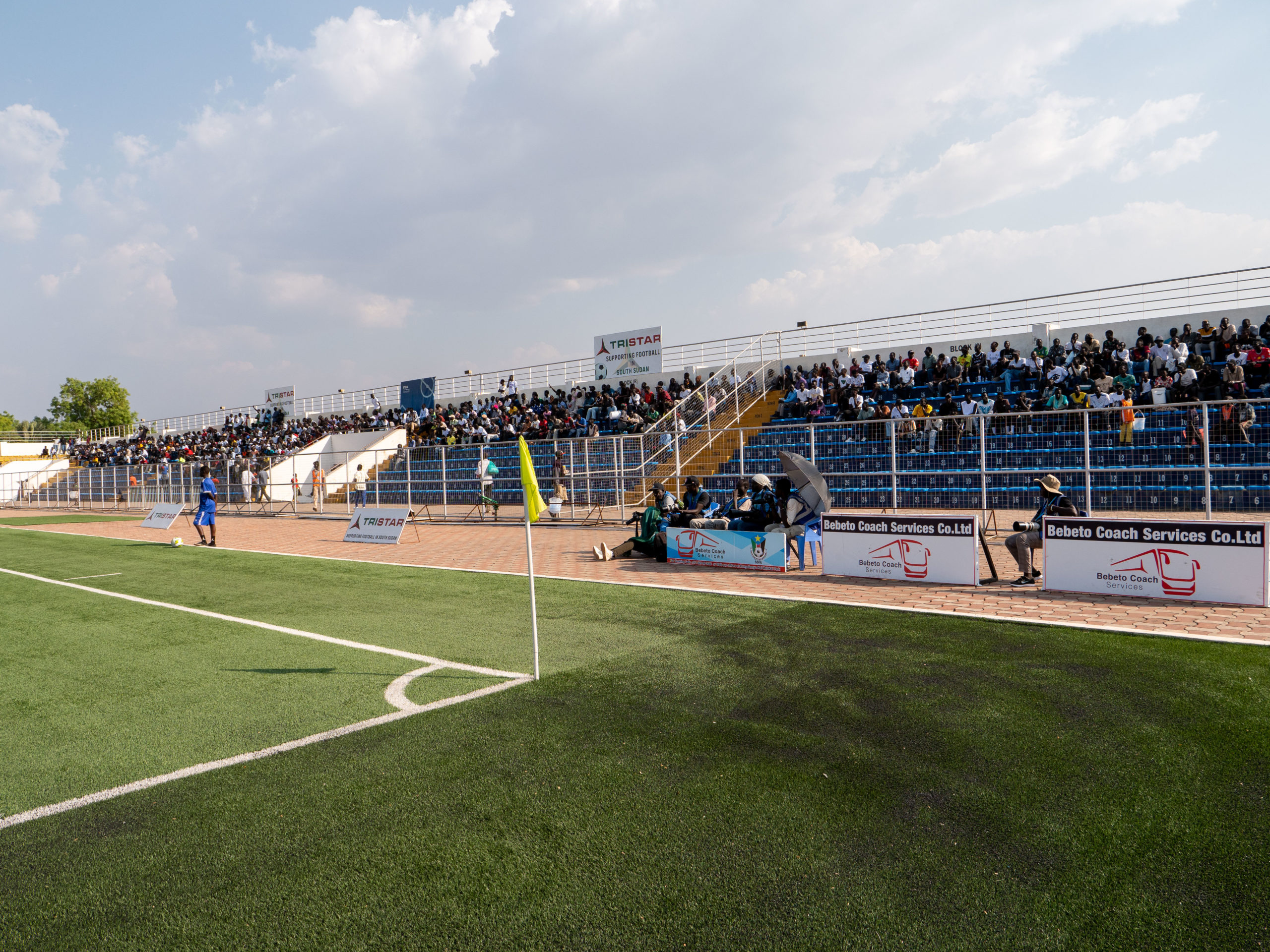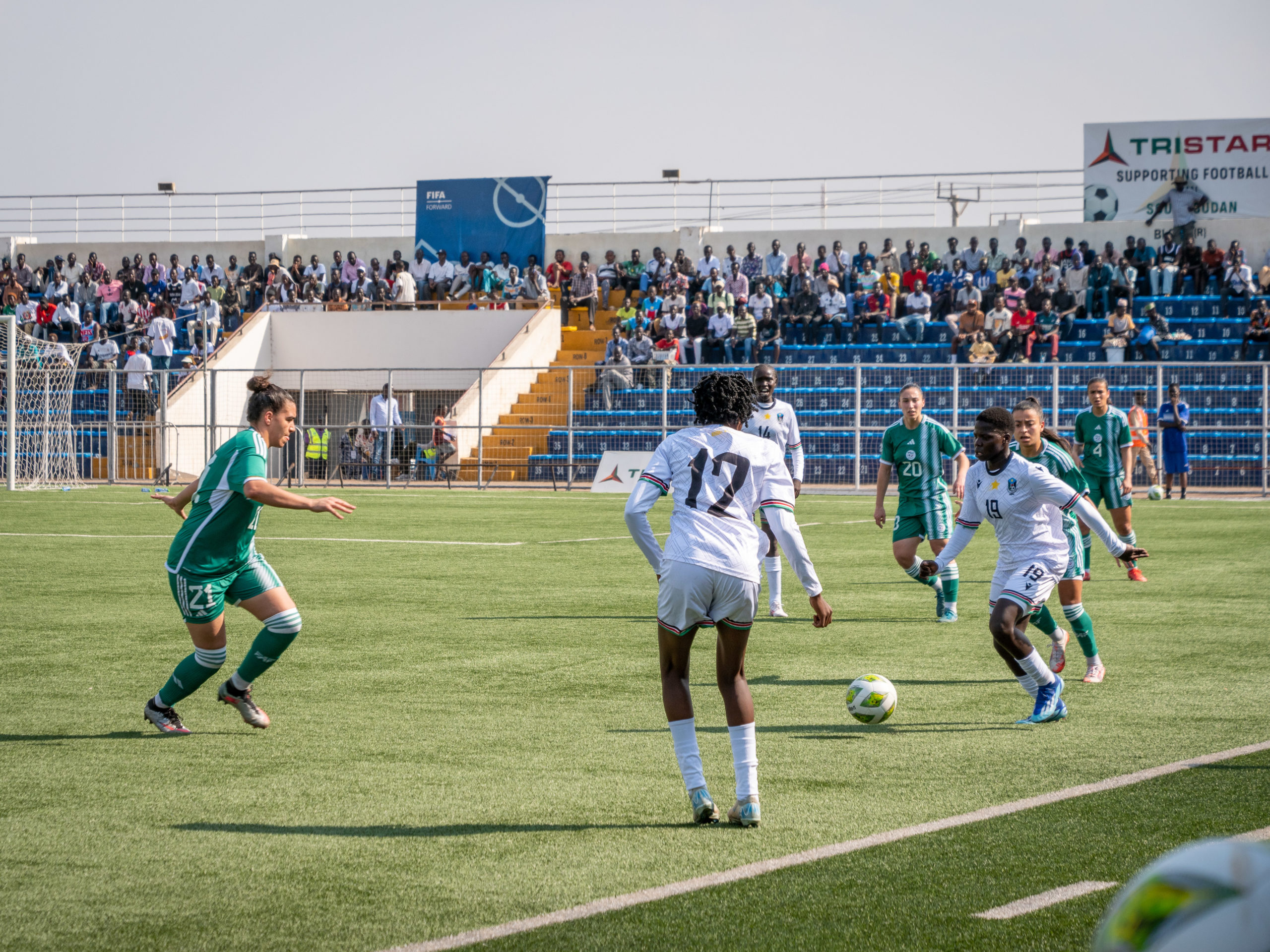Built in 1962 under the regime of Ibrahim Abboud, the Juba National Stadium was renovated and inaugurated in June 2024 by South Sudan’s President Salva Kiir Mayardit et FIFA’s Gianni Infantino. It has a capacity of 7,000. It regularly hosts soccer, wrestling tournaments as well as official ceremonies and festivals. The pictures show the stadium after its renovation and before. Those showing the renovated Juba National Stadium were taken during a qualification game for the Women’s World Cup, where South Sudan’s Bright Starlets confronted Algeria’s Fennecs, on 18 February 2025.
